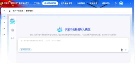 “之所以取名为‘智管优配’,就是要通过智能化手段加强机构编制管理,从而优化机构设置、职能配置和人员编制调配。”宁波市委编办相关负责人说,相比于传统机构编制管理模式存在的对部门真实履职情况掌握不够精准、机构编制资源配置缺乏科学依据、机构编制运行质效评估缺乏有效方法等堵点难点,人工智能的介入,能够为机构编制工作的科学化、智能化、精细化提供全新的解决方案。